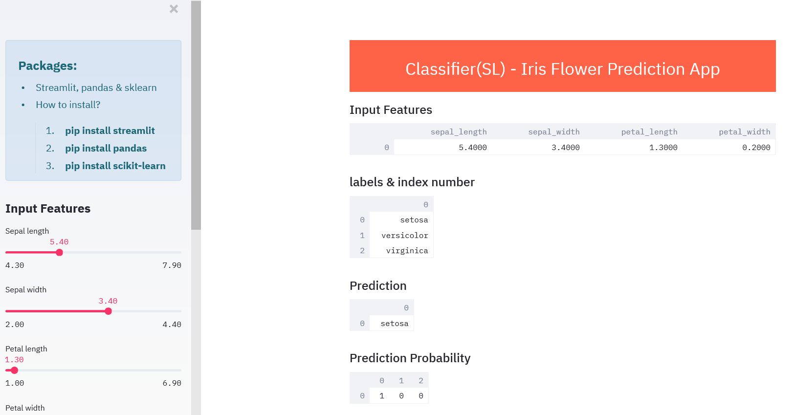 - Iris Prediction application (Classification).
